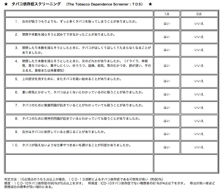 ニコチン依存症のスクリーニングテスト(TDS)
